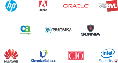 3com AFP Horizonte America Leasing Anixter Alturas Minerals Atton San Isidro Avaya Perú Banchile Corredores De Bolsa BBVA Asset Management Bear Creek Mining Belltech Bellsouth Cámara De Comercio Canada-Perú Celfin Capital Cavali Cerro La Mina Citibank CMA Compaq Latin America Corp. Continental Bolsa Continental SAF Convexus Corporación Pesquera Inca Credibolsa Credicorp Credifondo Datco Datacont Dlink Duran Ventures EBD EMC Empresa Editora El Comercio Enaex Esco Exploraciones Collasuyo Fábrica Nacional De Moneda y Timbre-Real Casa De La Moneda Fábrica Peruana Eternit Fashion Graffiti Fassteam Ferreyros Finmarkets Fundacion Clover Gemalto Colombia Global One GMD GPI Valores IBM Del Perú IDC Inca Pacific Resources Indra |